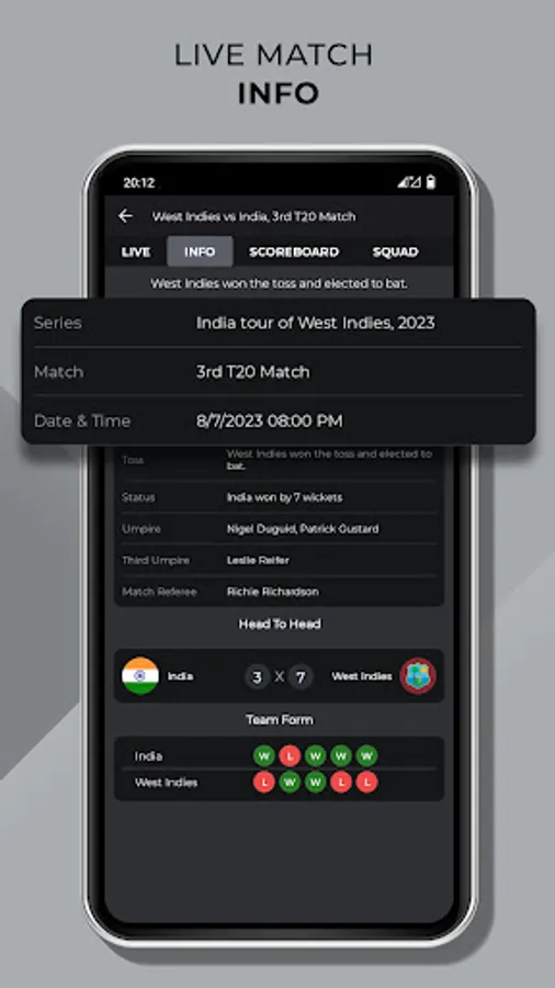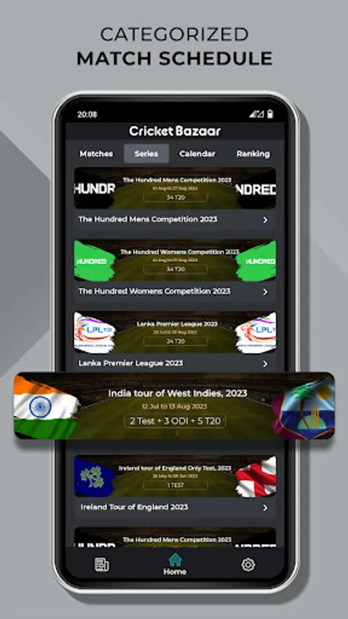 With our app, you can easily stay on top of all upcoming matches with our comprehensive schedule and alerts feature. Whether you're a fan of test matches or ODI, we've got you covered.