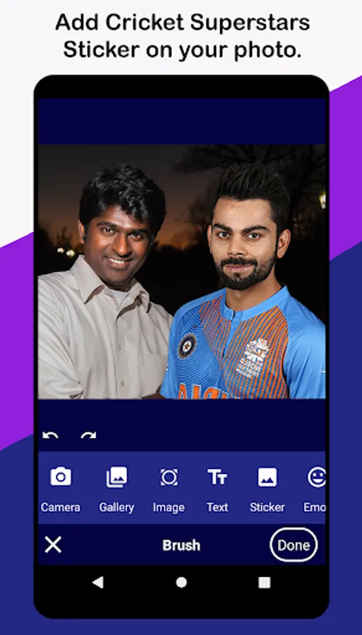 All the big fans of Cricket, this Cricket Photo Editor App provides you frame with cricketers in which you can put picture of yourself to show support or simply because you love that cricketer. You can also add cricket related stickers on your photo, write text on it, add emoticons and many more stuffs.
