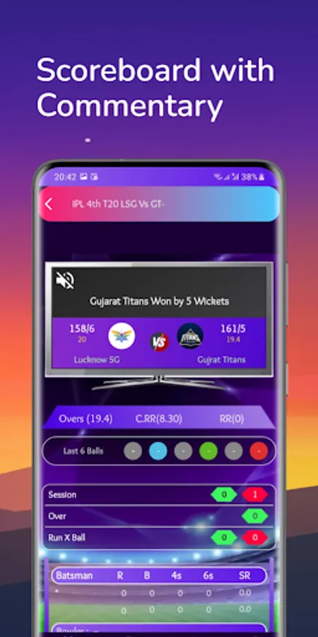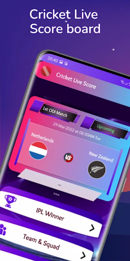 Cricket Score app is made for perfect cricket scoreboard. You can enjoy today cricket match ball by ball in single screen, no need to navigate through the app unnecessary. You can follow the details of the any live match and also can see scoring by overs.