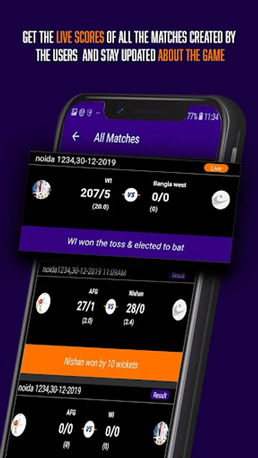 6. The application has a live scoreboard for all the live and recent matches conducted using the Cricplex Cricket Academy application.