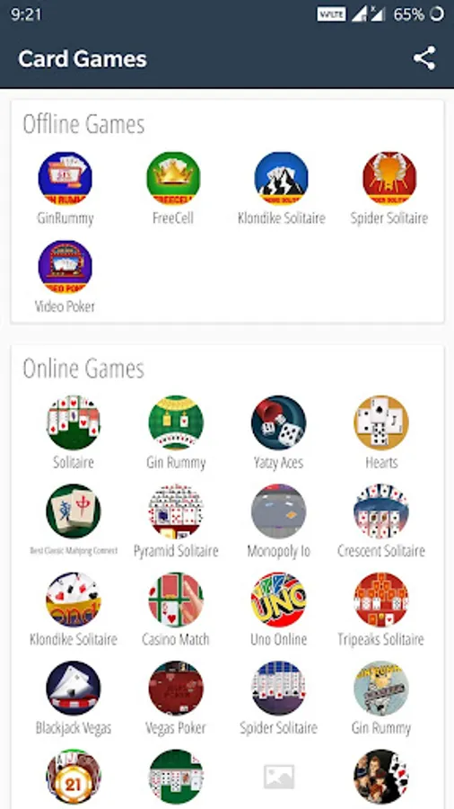 The app has over 50 free card games like gin rummy, solitaire, poker, hearts, spades etc.