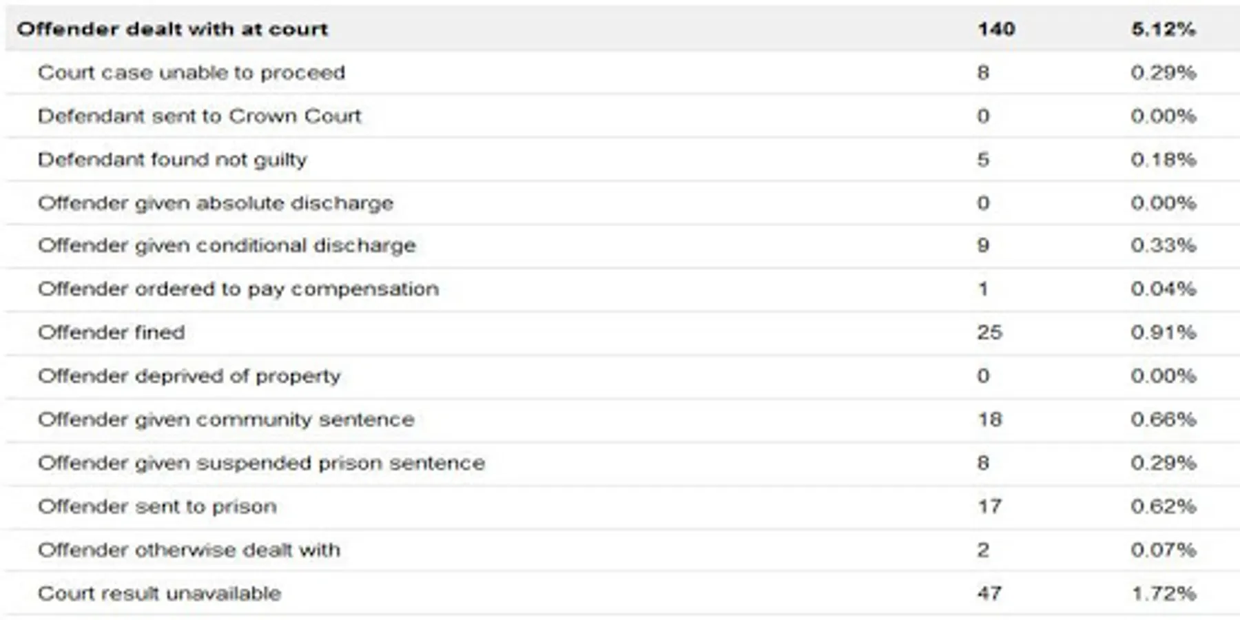 Using the latest official crime statistics list and read about reported crimes in England, Wales and Northern Ireland.