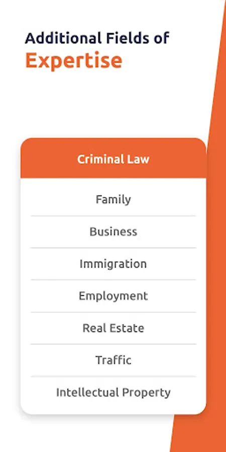 The Criminal Lawyer app provides instant DUI attorney online consultation, with various specialties in specific branches of the law such as: