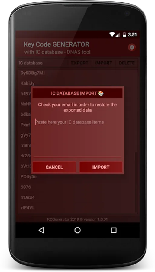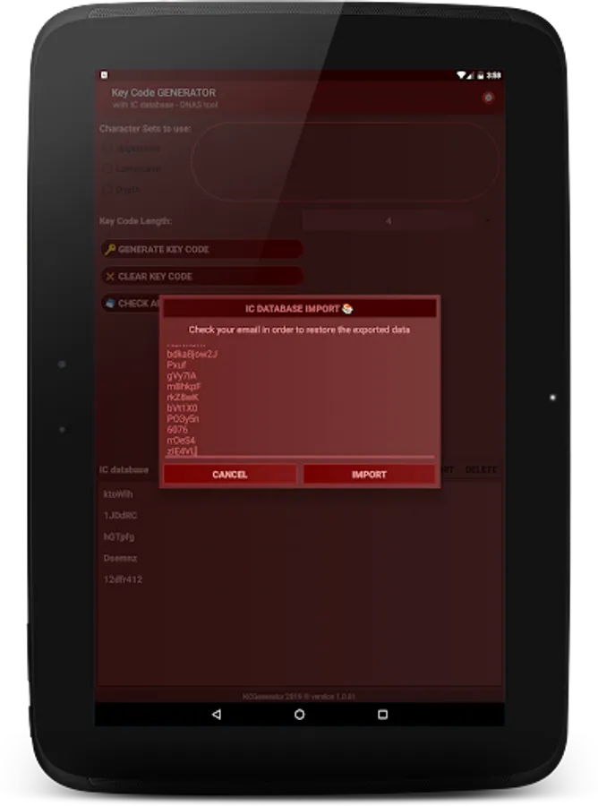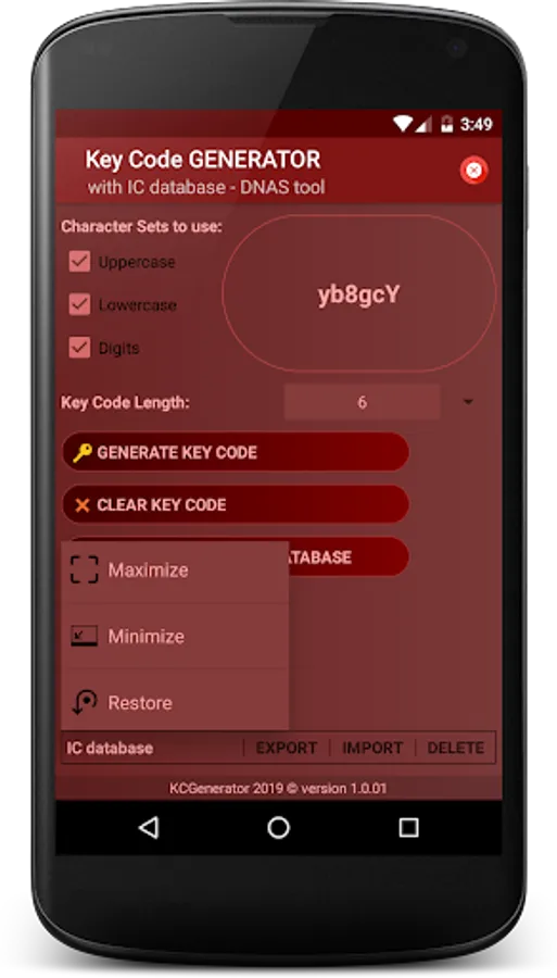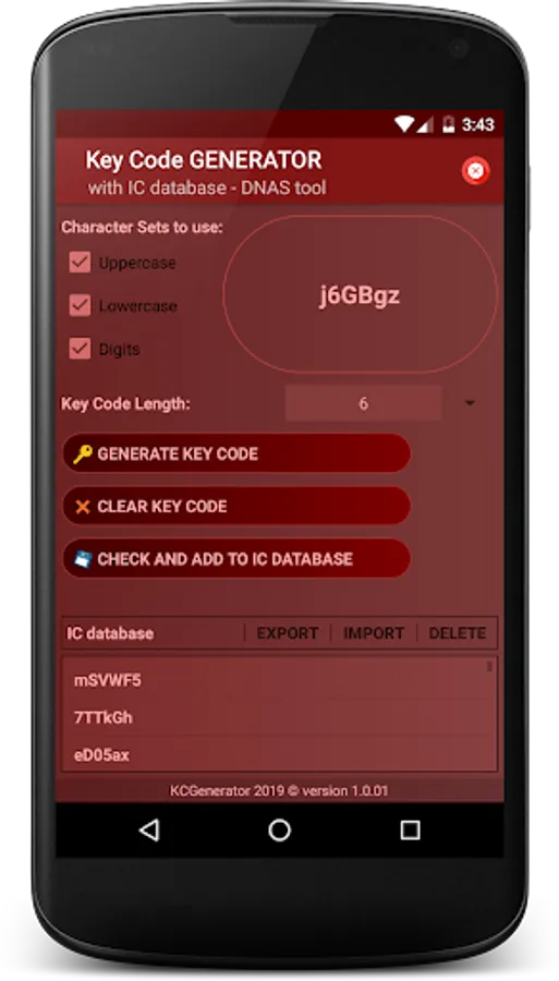 A great DNAS tool that help developers to manage the keys codes that they need to generate to be used in all kind of programs / applications. This application can generate key codes using three sets of characters. Contains an IC database that can be exported only to emails accounts.