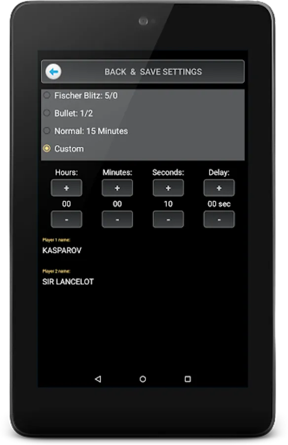 Countdown Times and player names are customizable.