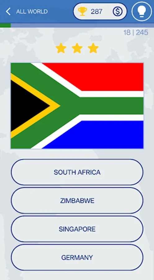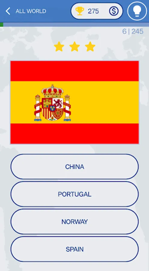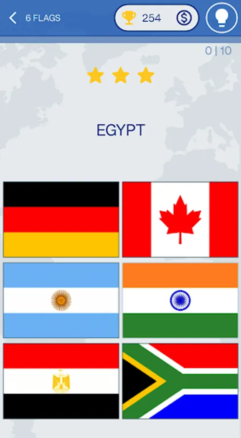 In this world flags quiz you will also find a Statistics section. While playing, the game automatically calculates your statistics and makes it easy to find where you are good enough or where you need more practice.