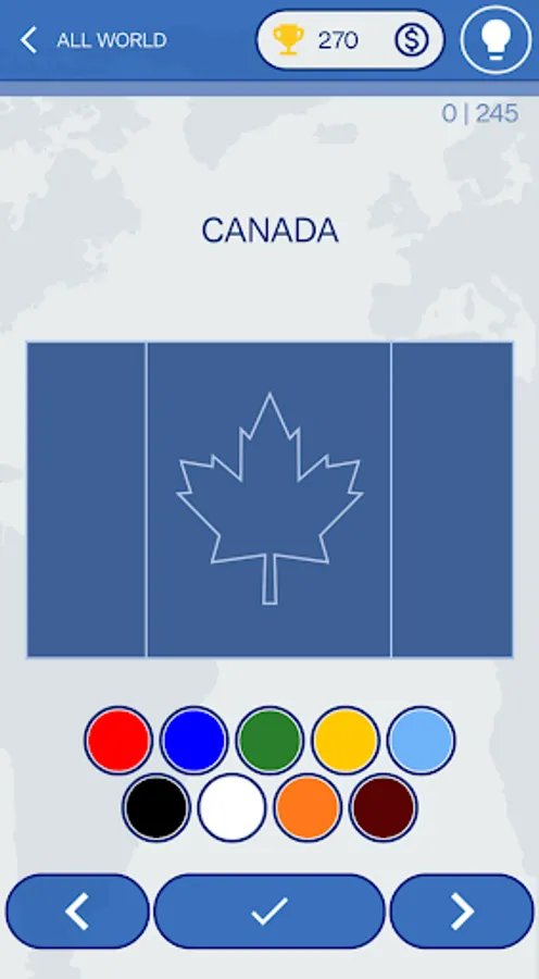 We took guess-the-flag challenges to a new level by introducing flag painting challenges. The main purpose is to color all the flags of the world. You can use the difficulty levels and the available free hint system to color even the most difficult flags of the world. It’s time to learn flags while playing one of the most fun and unique flag games.