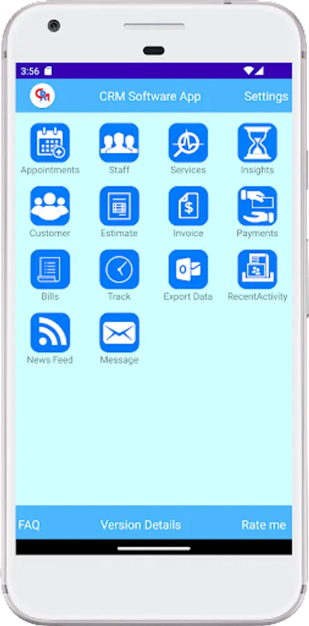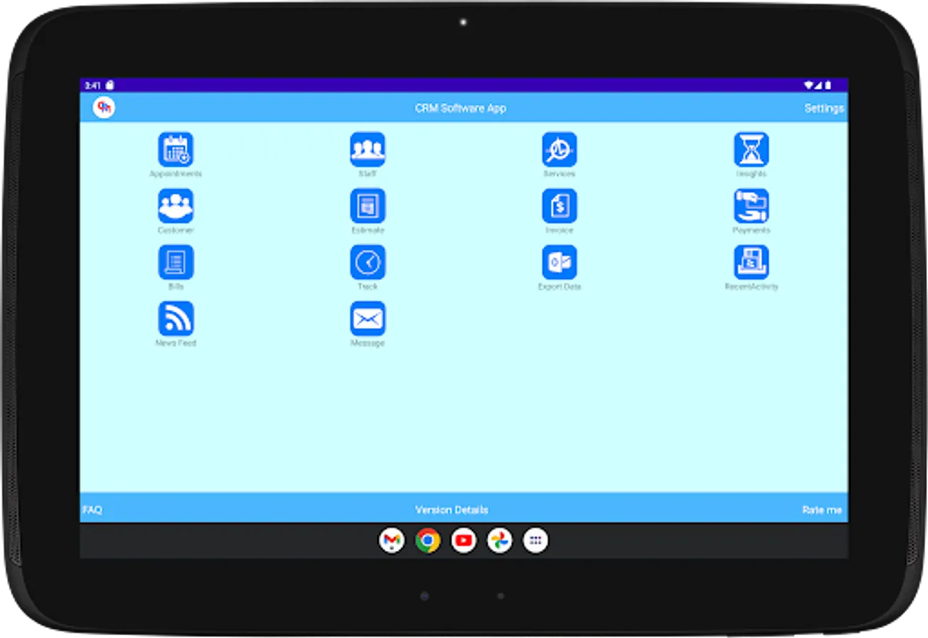 It includes essential tasks like inquiries, Appointments, Invoices, Payment, Contract, Time, Task and Project management features