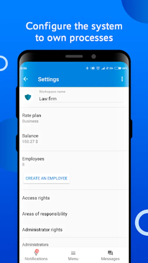 Just in a few clicks you can configure stages, groups and employee access rights thanks to the intuitive and clear interface.
