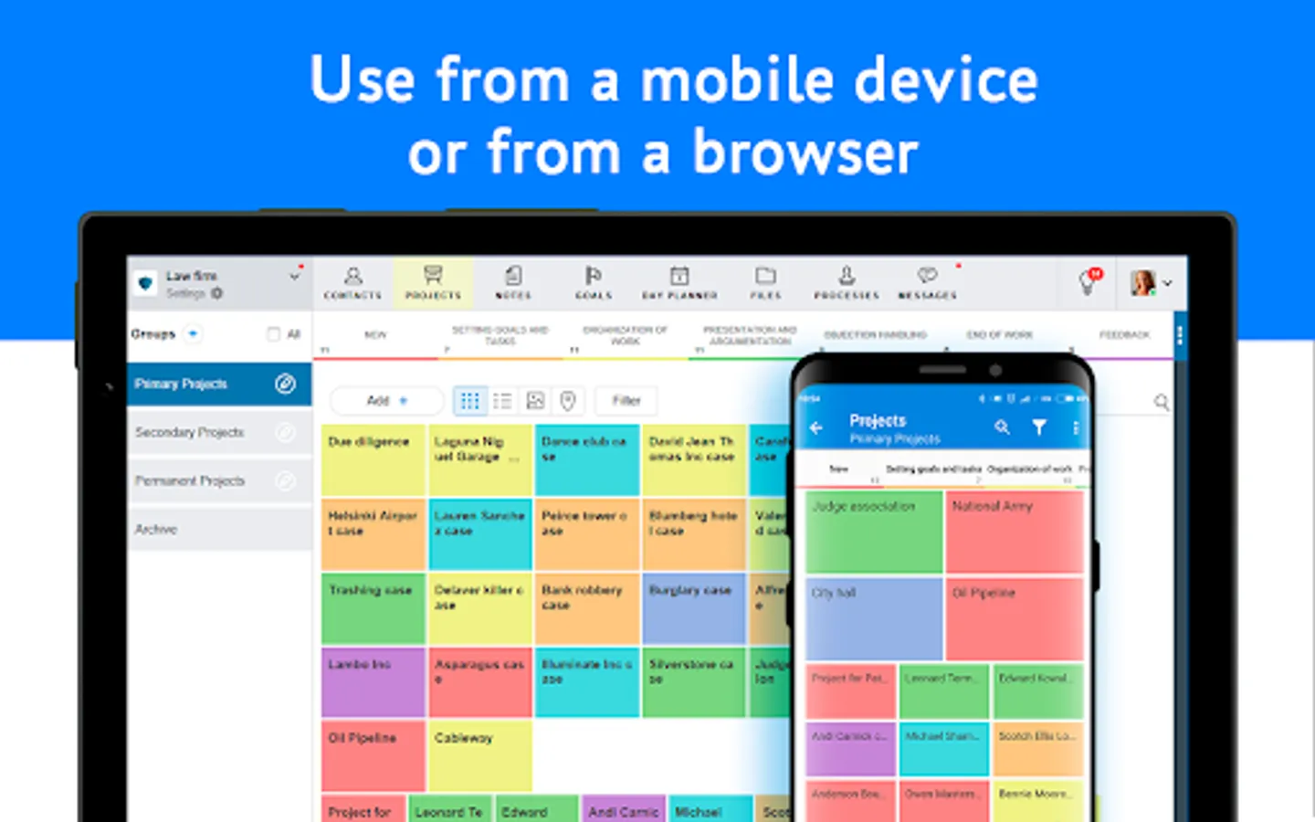 ✓ flexible access rights, time tracking, business card recognition and much more.