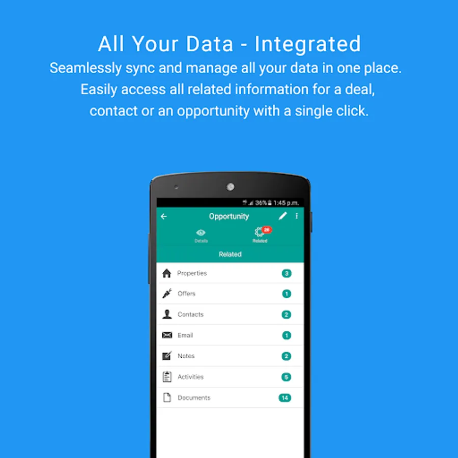 -Increase productivity and revenue. Sales reps have ready access to key customer data at their finger tip – be it opportunity, contact, company, activities, notes & more.