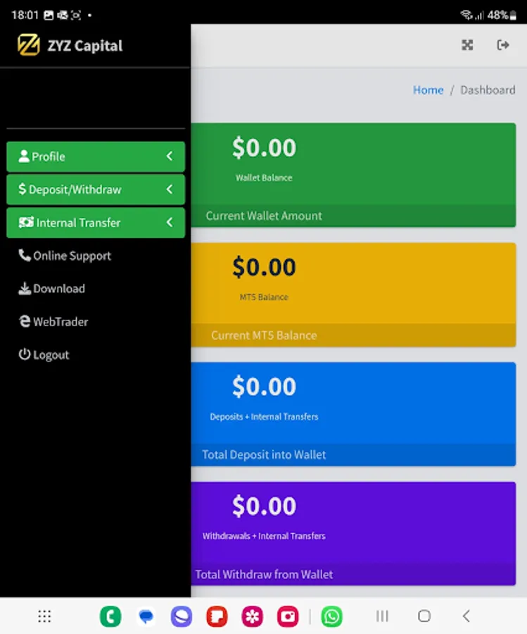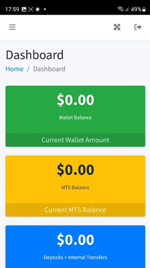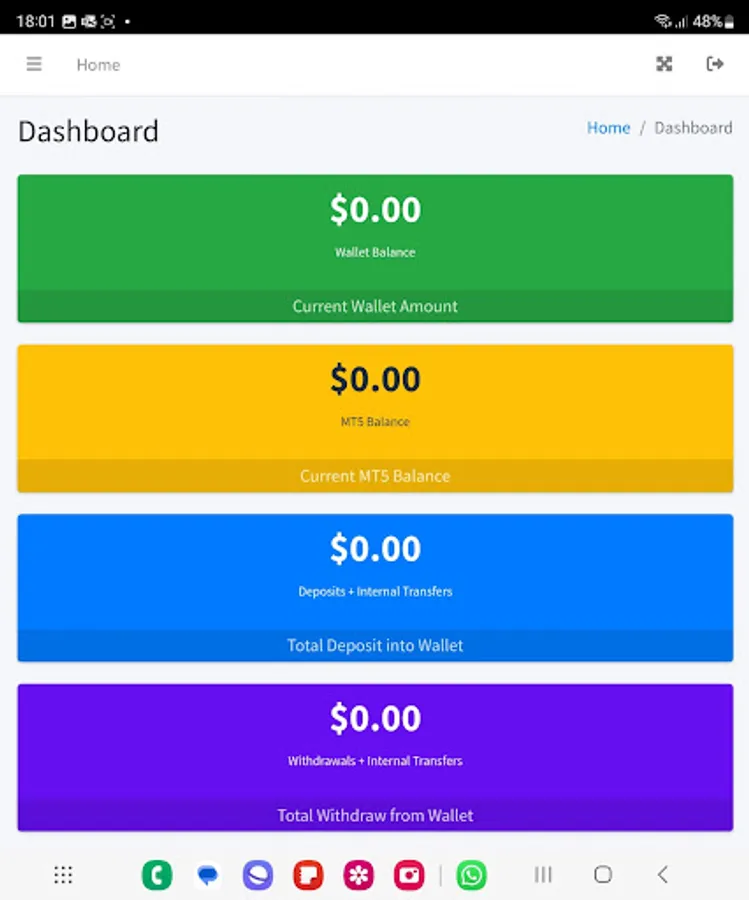 Money management client portal dashboard for traders to manage their margin and assets. For withdrawals and deposits, and for transferring assets from meta trader 5 to wallet and from wallet to meta trader 5.
