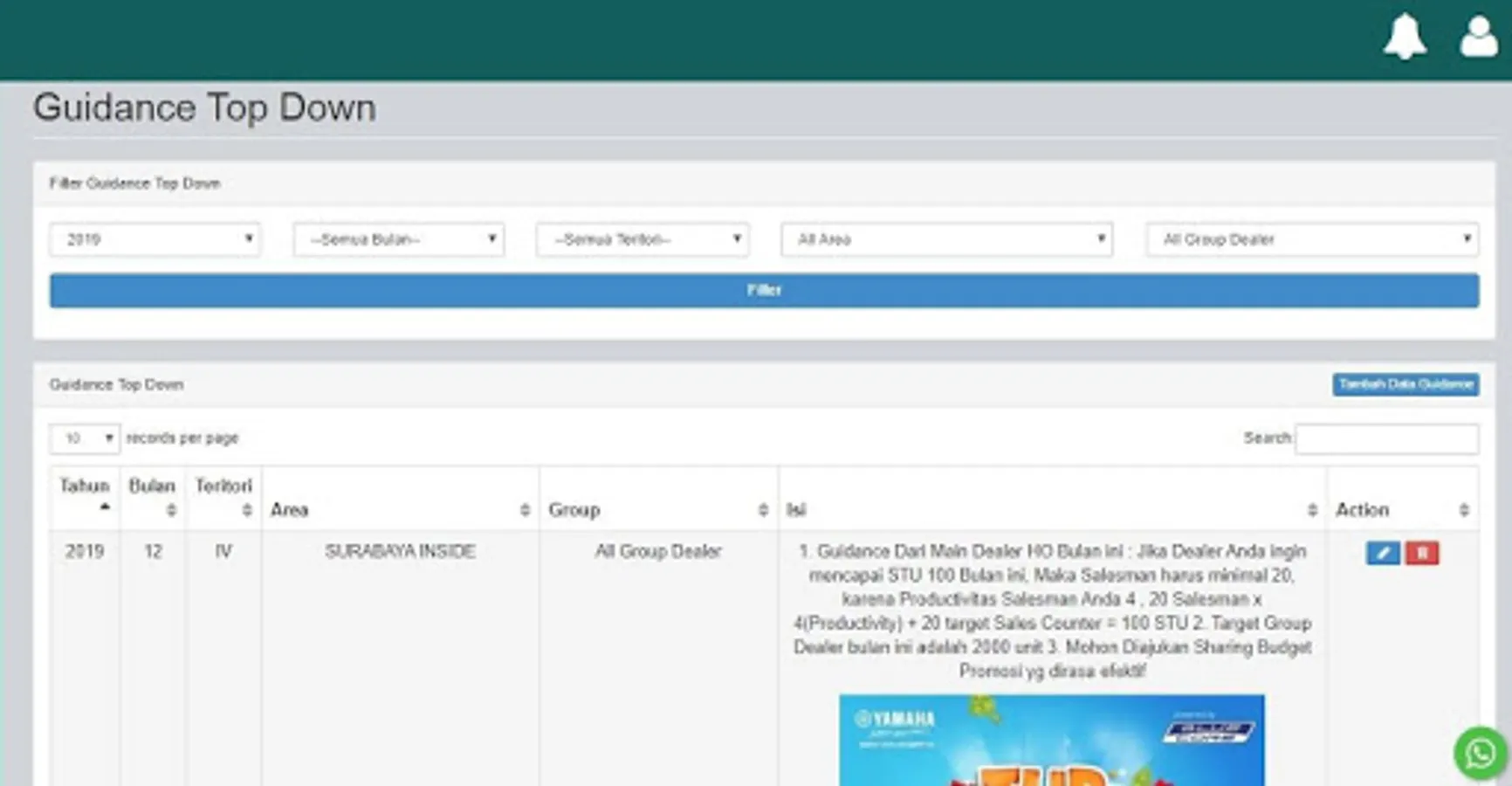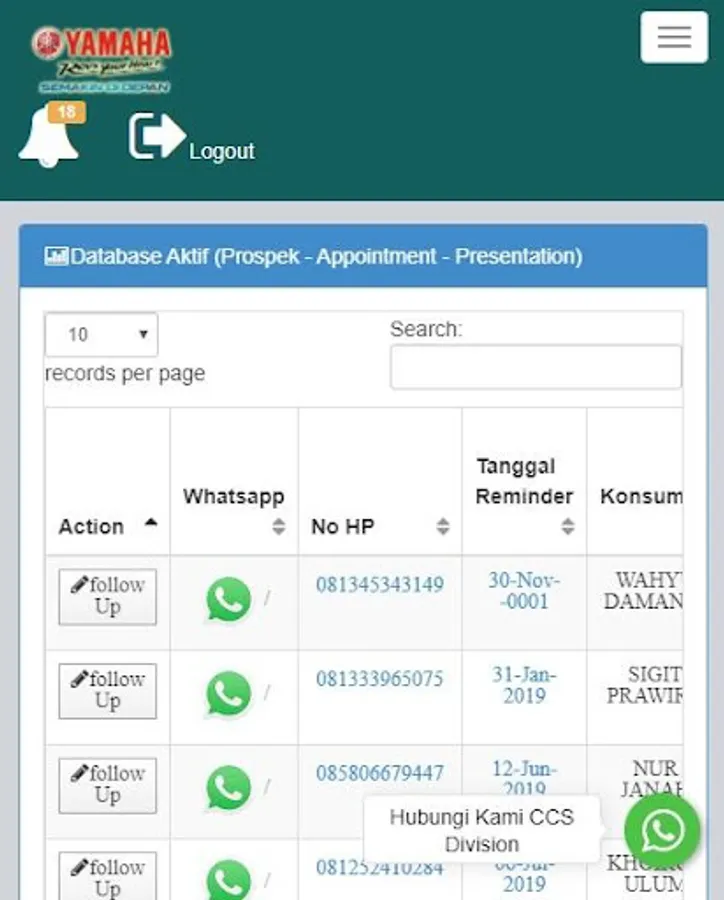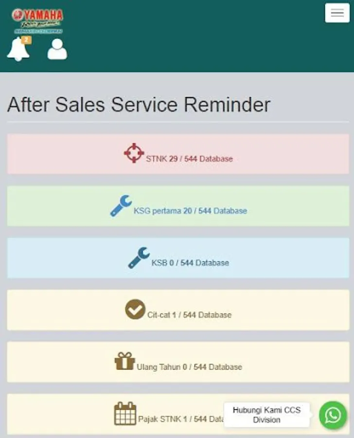 Customer Relation Management System merupakan Management hubungan pelanggan mulai dari prospek awal, closing dan after sales, sehingga kebutuhan konsumen akan selalu terpantau oleh Dealer Yamaha di bawah Main Dealer PT. SURYA TIMUR SAKTI JATIM dan PT. RODA SAKTI SURYA MEGAH.