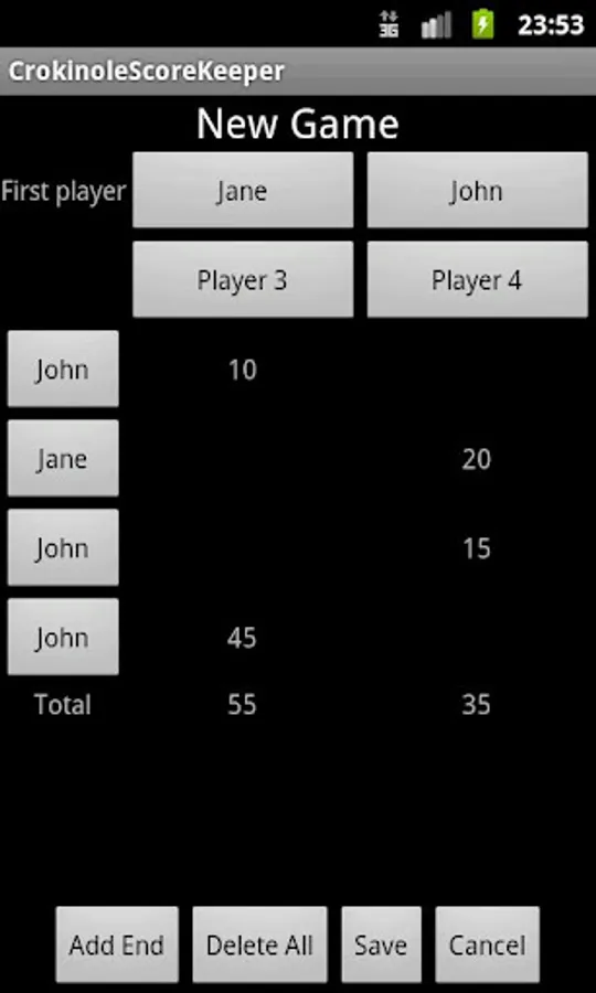 If you experience crashes after upgrading from an older version, try to clear the data (Go to your device's Settings, choose Applications > Manage Applications > CrokinoleScoreKeeper > Clear data