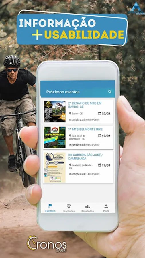 Cronos App has the objective of improving communication between Cronos Cariri and you, facilitating access to registrations, results, regulation consultation, details of the events besides the management via App of all its registrations.