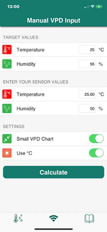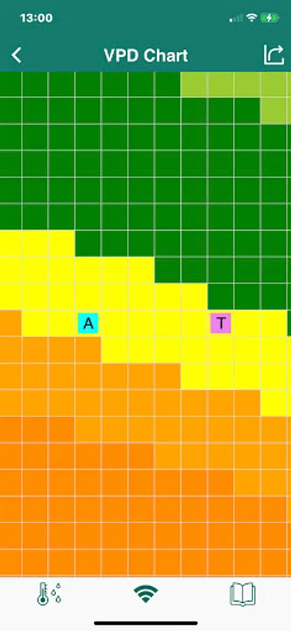 Simply enter your room values for temperature and humidity and select a target period such as Bloom or Seedlings to generate an informative chart showing your current VPD and position.