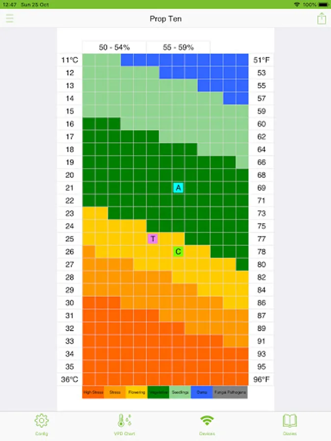 Calculate multiple VPD values for your grow room and easily visualize them in an easy to read VPD chart as shown on our website here https://www.cropmaster-led.co.uk/vpd-buddy-vpd-chart.
