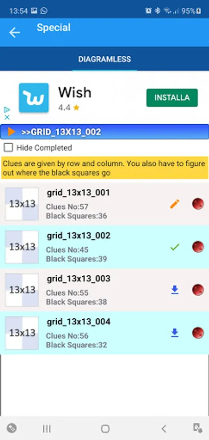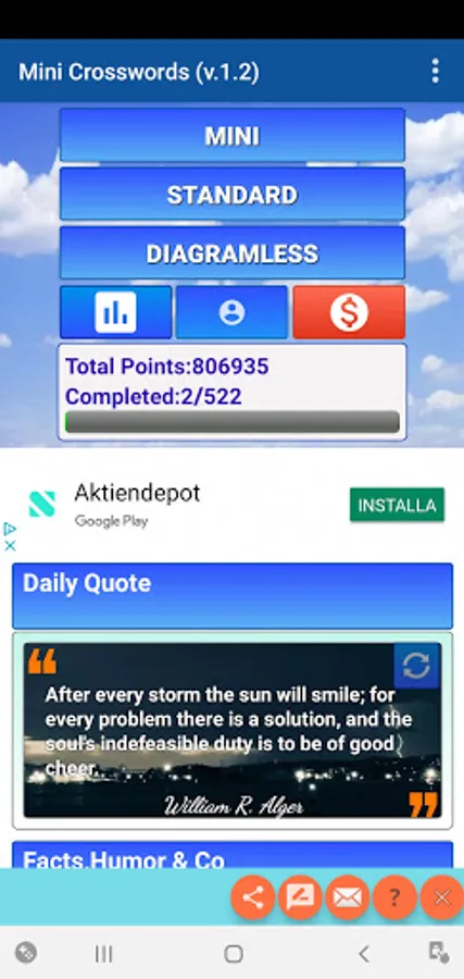 The application offers more than 500 free crossword grids in different size.