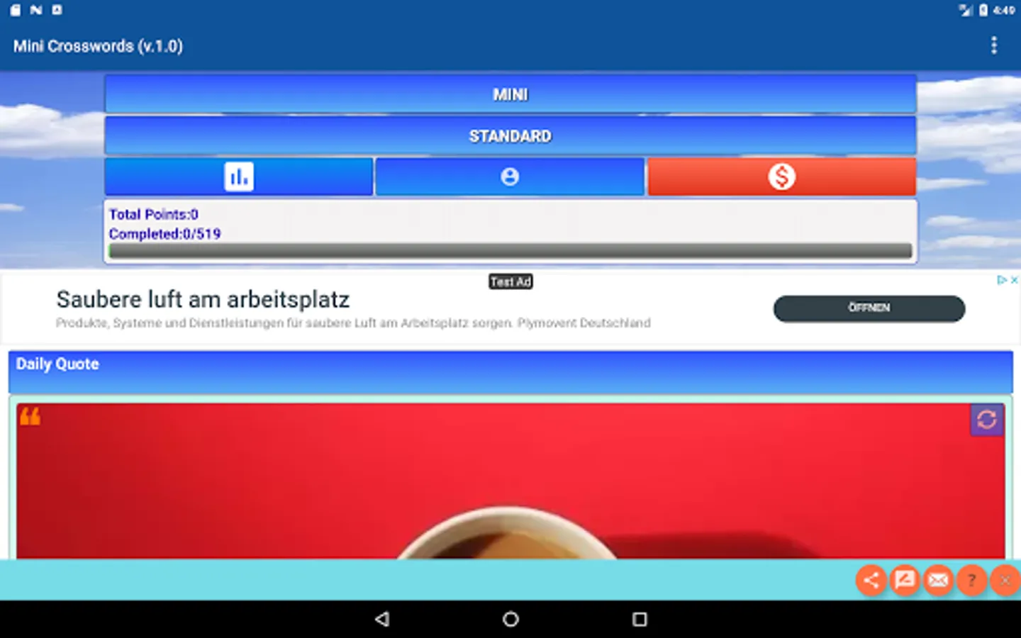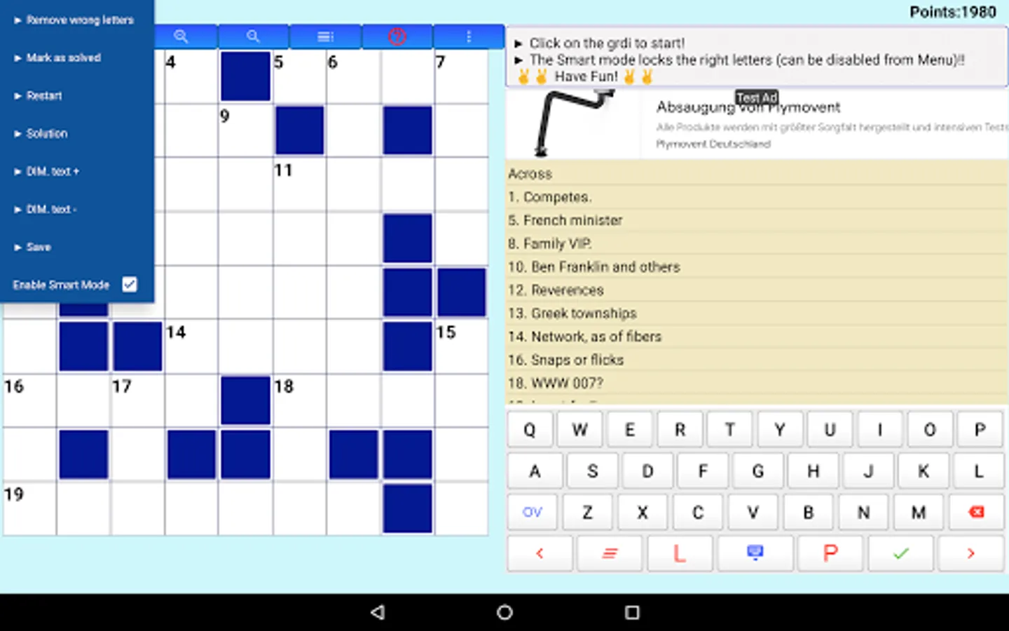 - The challenging Crossword puzzles can be saved and completed when you want.