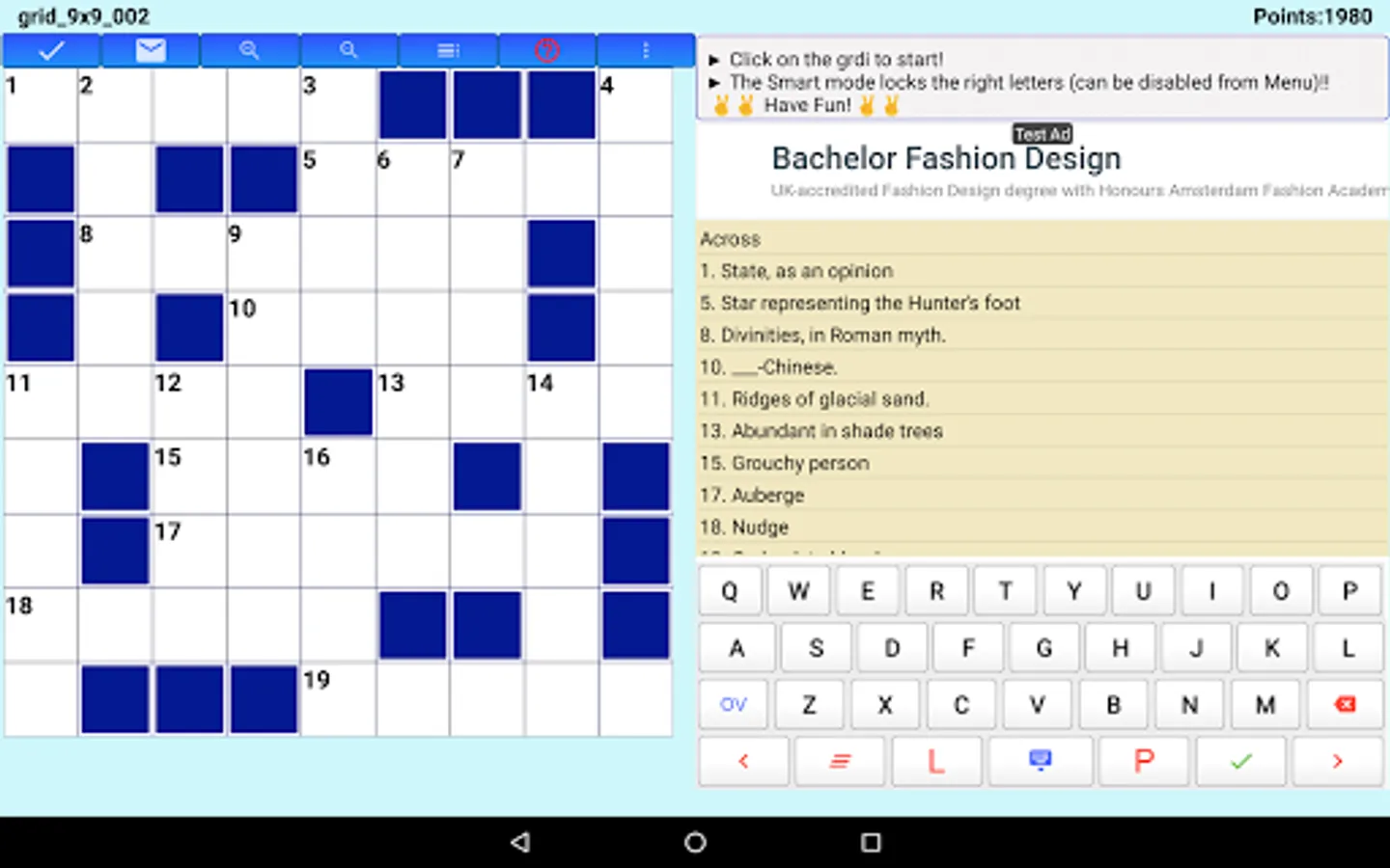 Main functionalities of this fun and free crossword puzzle grid application in different size:
