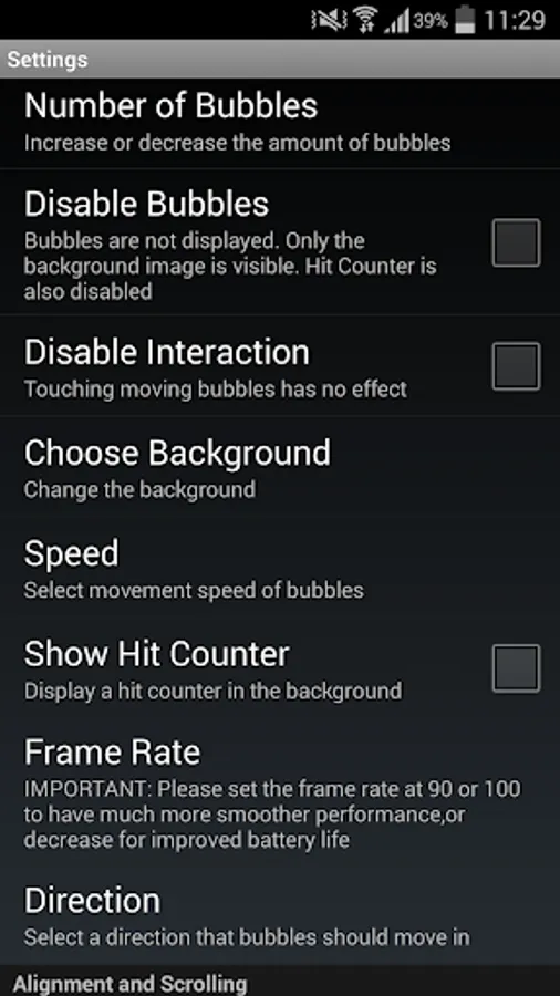 - FRAME RATE - Select how fast the wallpaper is drawn. Increase for smoother animations or decrease for improved battery life.Adapt your frame rate on your phone or tablet (higher is better)