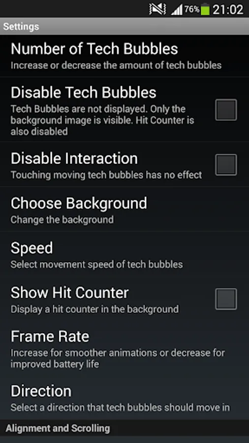 Tech Bubble HD Has tons of settings: