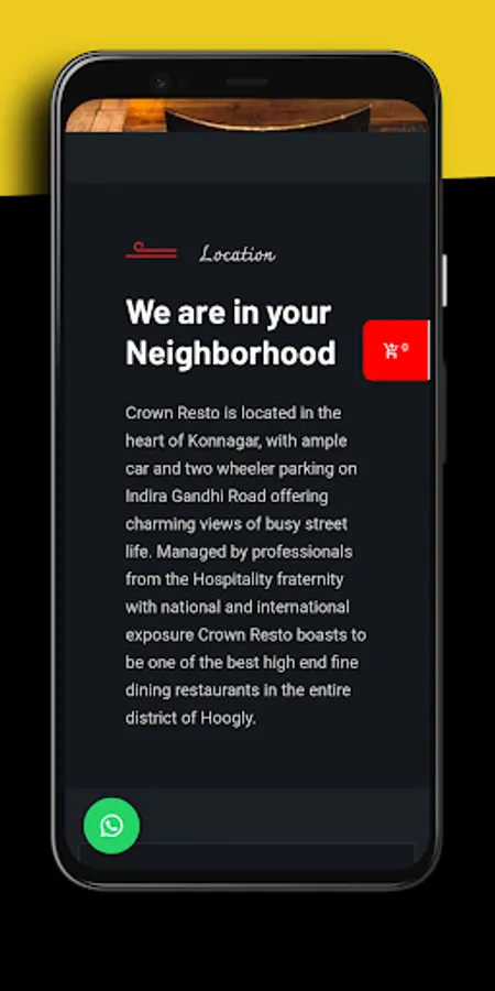 Crown Resto is located in the heart of Konnagar, with ample car and two wheeler parking on Indira Gandhi Road offering charming views of busy street life. Managed by professionals from the Hospitality fraternity with national and international exposure Crown Resto boasts to be one of the best high end fine dining restaurants in the entire district of Hoogly.