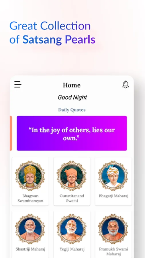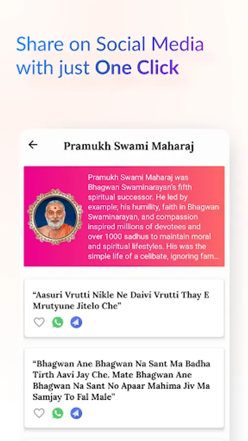 From Bhagwan Swaminarayan and Guru Parampara, App has a large collection of quotes and Sakhi's too.