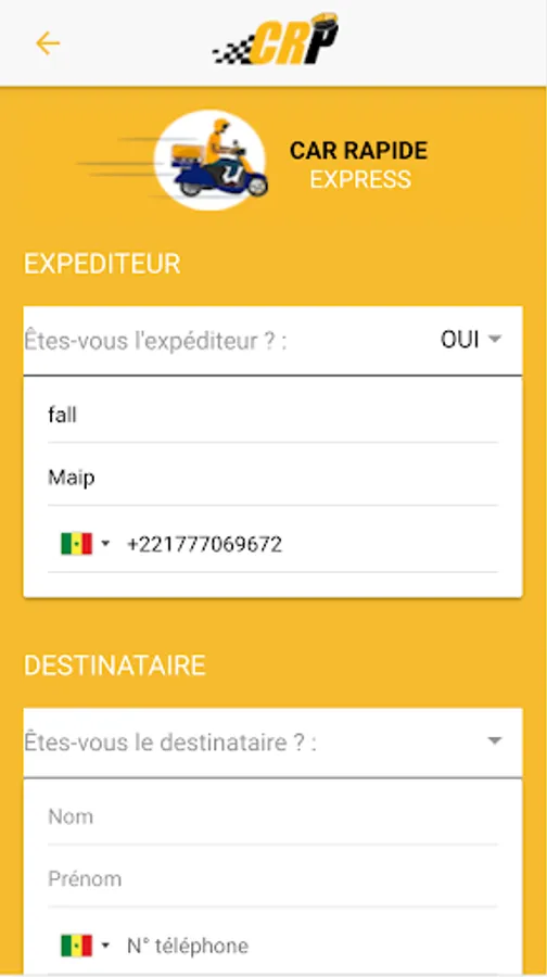 Car Rapide Prestige is the first Senegalese transport company to have adopted a variety of services such as: express delivery service and rental of vehicles with private driver. Fast Express Car is your express delivery and logistics service. This application allows you to follow in real time all your benefits with us! Welcome to the CRP universe