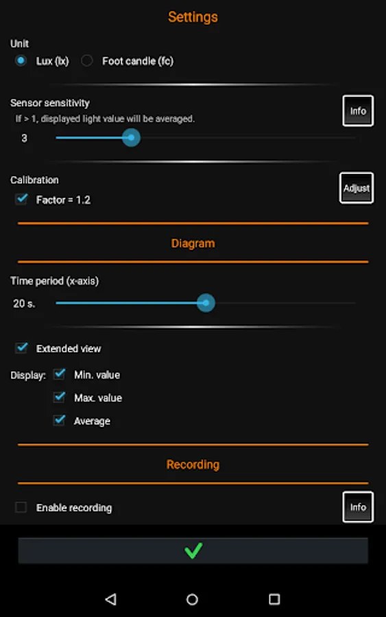 Simple application to detect the intensity of light. Check and compare the illuminance of different light sources.