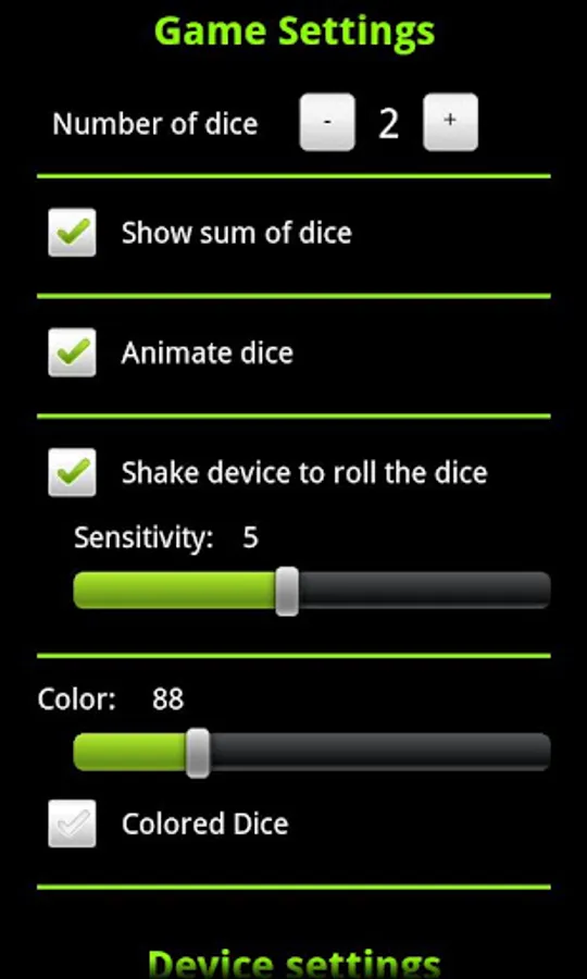 * To roll the dice, push the button or just shake your device (sensitivity is adjustable)