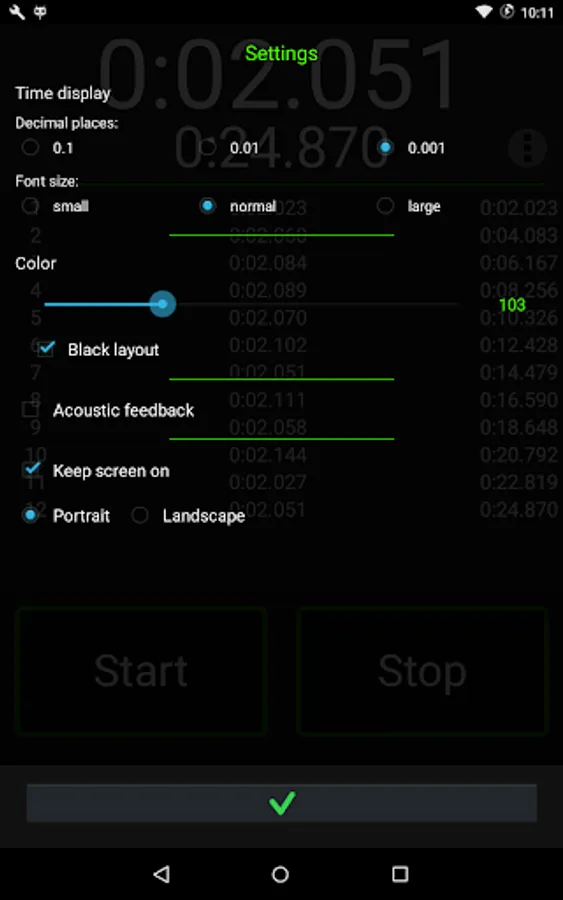 The stopwatch keeps running dependably in the background, even if the app is closed.