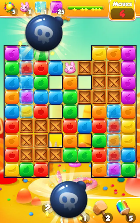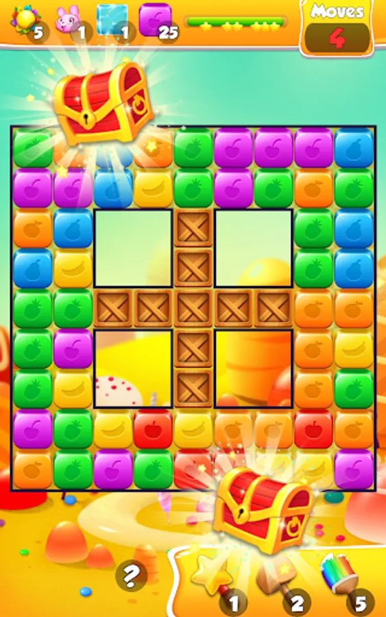 when have trouble solving the blocks puzzle you will find many free gifts on your cubes pop journey, as you progress you will collect special magic chest that will give you cube crushing surprises such as toy hammer blast, magic toy cubes stick, rainbow block crush brush and many many coins to spend in the game.