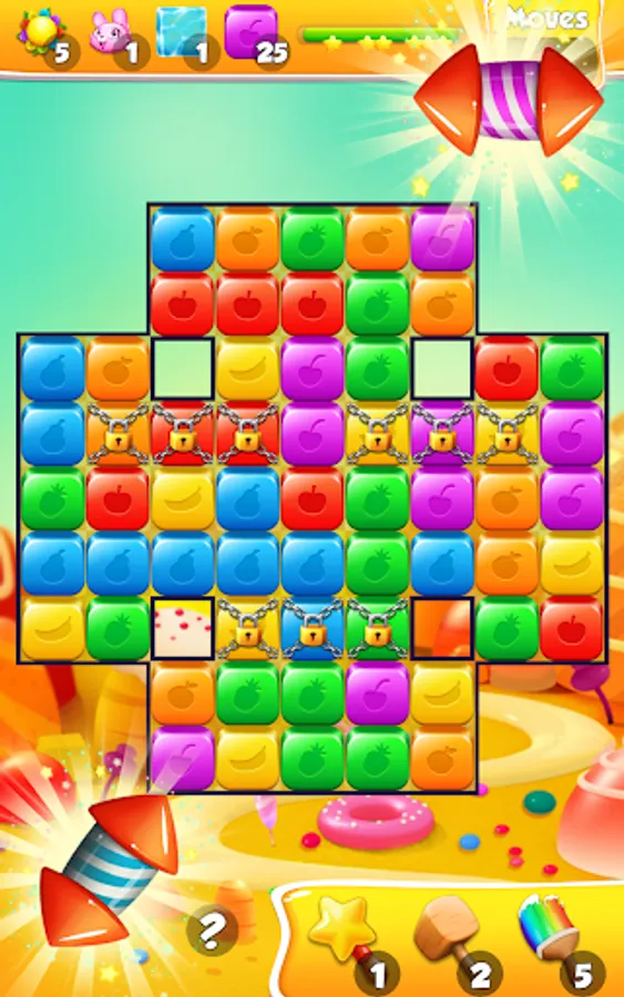 tap on 5 or more and get a rocket block buster that will clear a whole row of toy blocks.