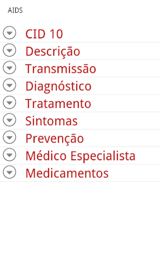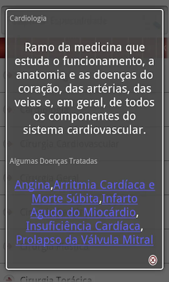 - MEDICAL SPECIALTIES - All medical specialties recognized by FCM - Federal Council of Medicine are covered. You can see its description, and quickly access the diseases linked to them and that are already registered in the application.
