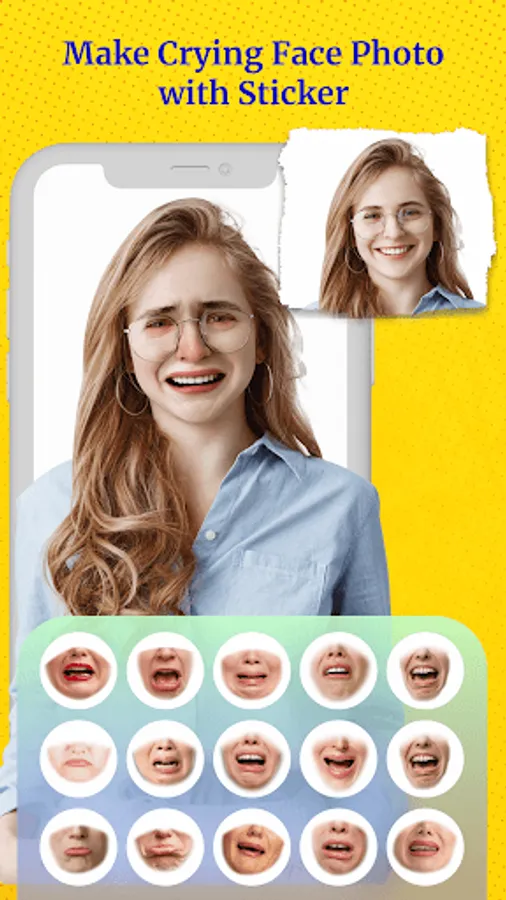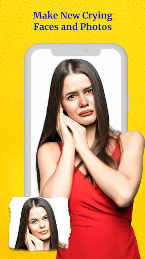 Crying Face Photo Cam Editor gives professional editing tools to make the look of the original and fantastic one. Easy to convert smiling photos into crying or sad ones with crying filters & stickers.