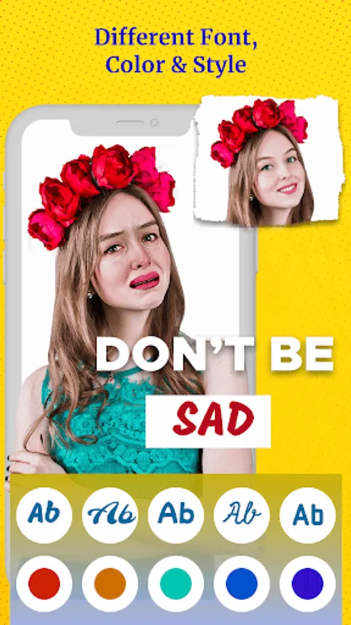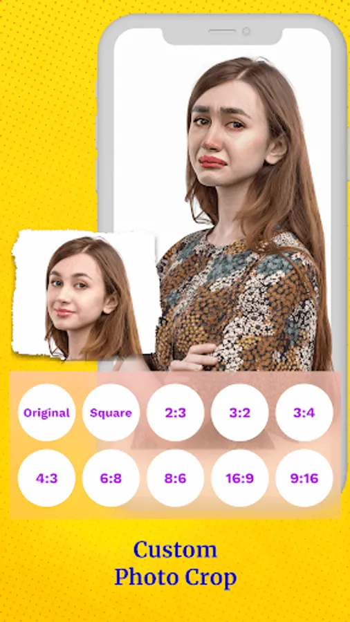 Crying Face Camera Filter allows take a selfie or select the photo from the gallery. Crop it in the 1:1, 3:4, 3:2, and 16:9 ratios, or keep it as the original. Crying effects for the face also give the option to rotate and change the image scale. Select the cry face stickers from the collection and set them on the face. App also gives the nose, eyes, and eyebrows stickers to add to the photo. To make the photo more funny, you can add an emoji on the photo. You can also write funny lines or quotes on the image with different font styles and colors. Select the filters to apply to the image.