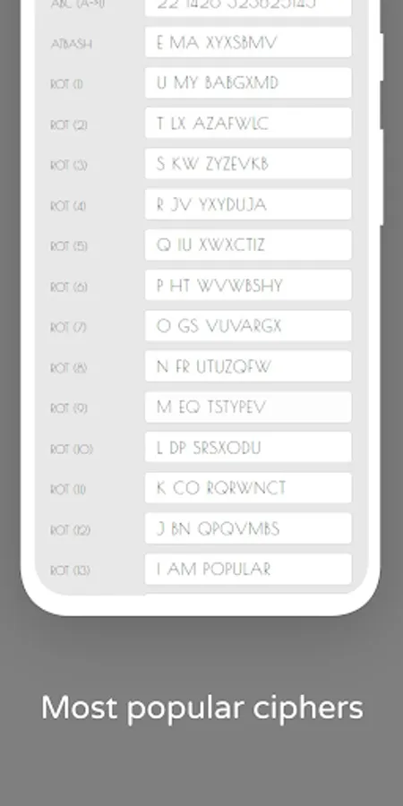 Includes most popular ciphers and their variations: