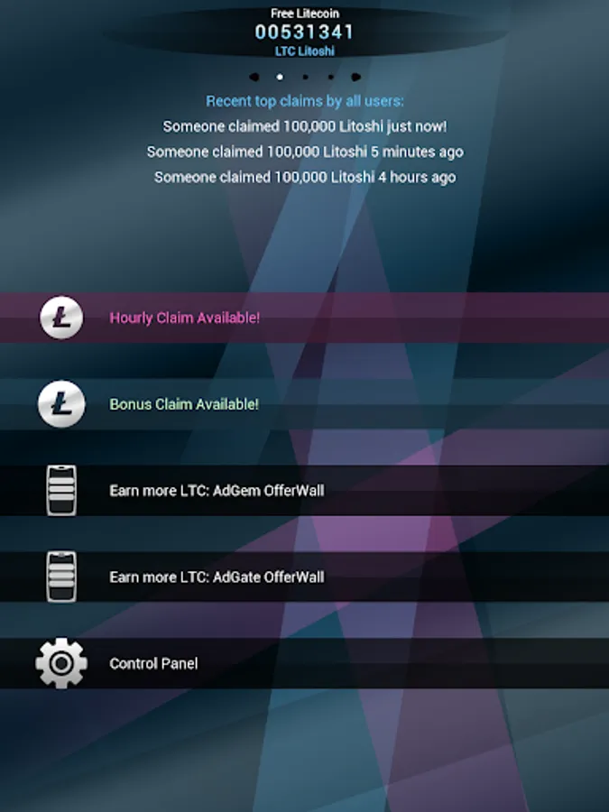 In the app you can claim a little free Litecoin every hour. We have big hourly rewards, simply spin and claim a prize. You get multiple spins every hour so if you don’t like the first reward, you can spin and try again. You can even top up your spins by watching a simple ad, so keep trying to claim those top prizes!