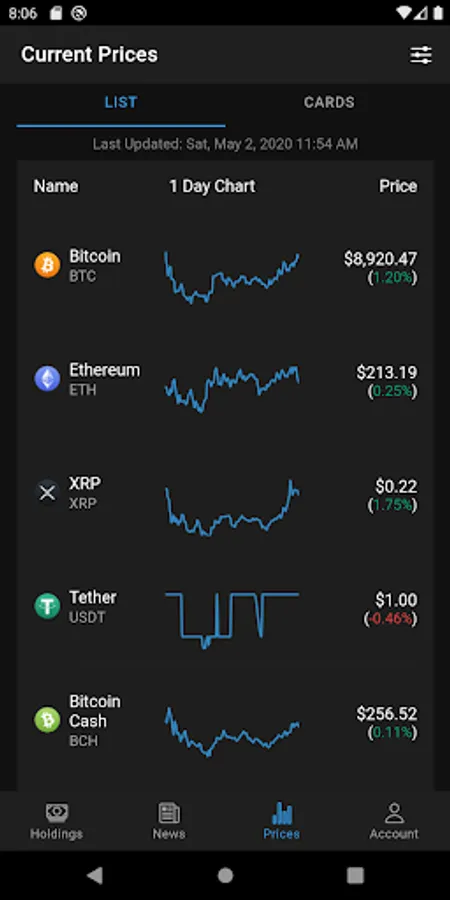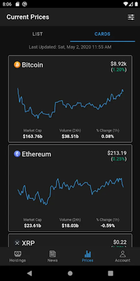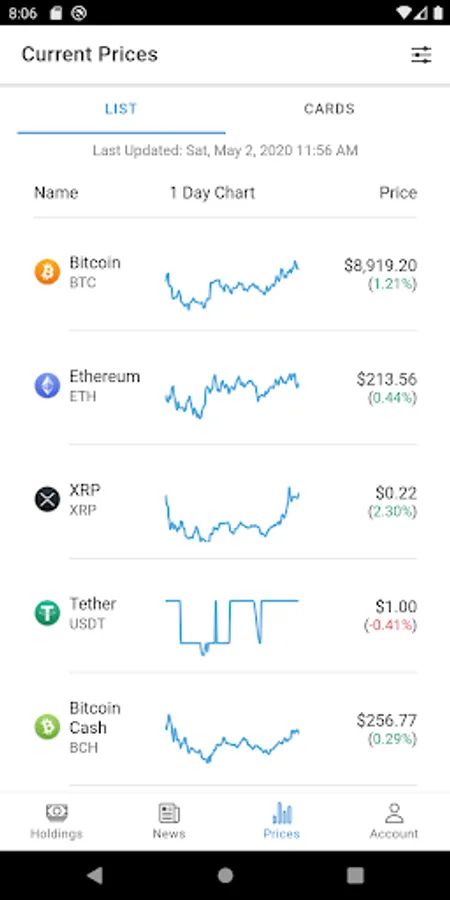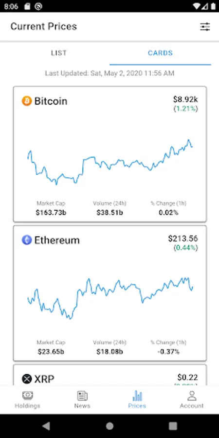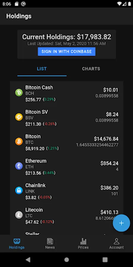 Crypto Watch displays up to date news articles from many different sources, and price charts for the top 100 cryptocurrencies in real time. In addition all users who choose to register will also be able to track their portfolio with ease without linking any actual addresses or accounts to the application. However for ease of use, users are also able to do a one time sign in to their Coinbase accounts(using their industry standard OAuth sign in) and Sync their wallet amounts to their profiles.