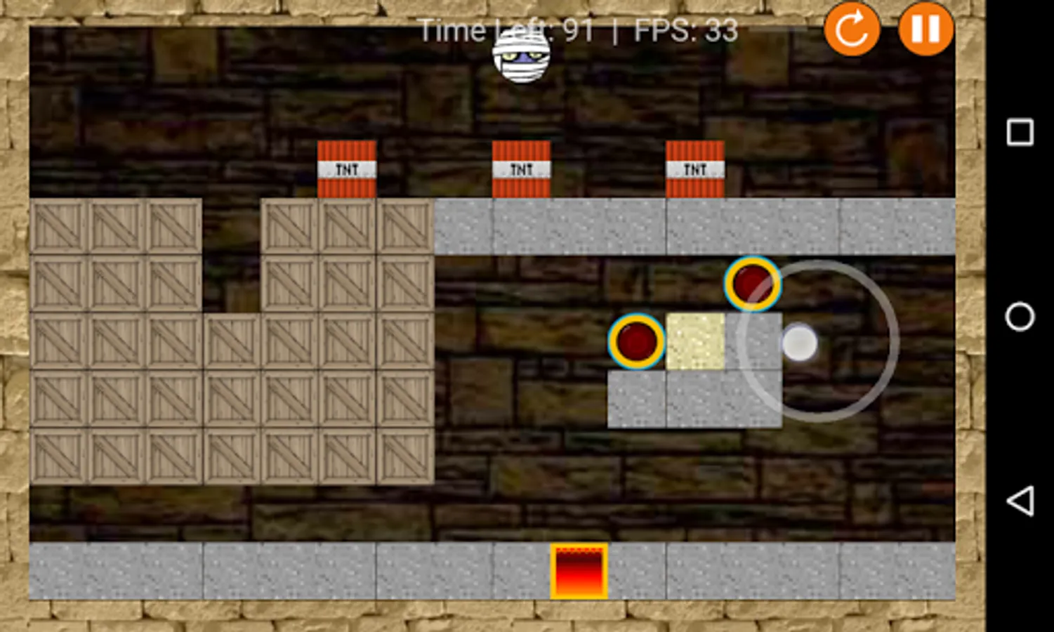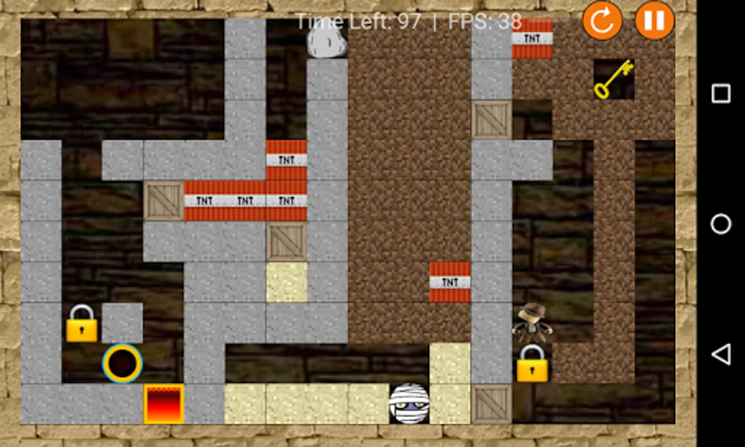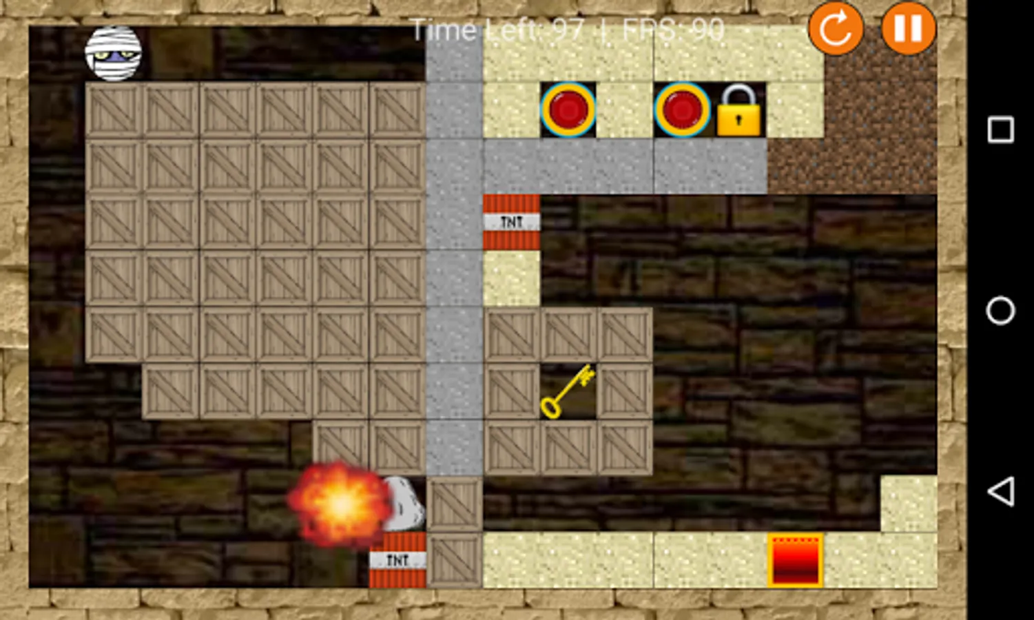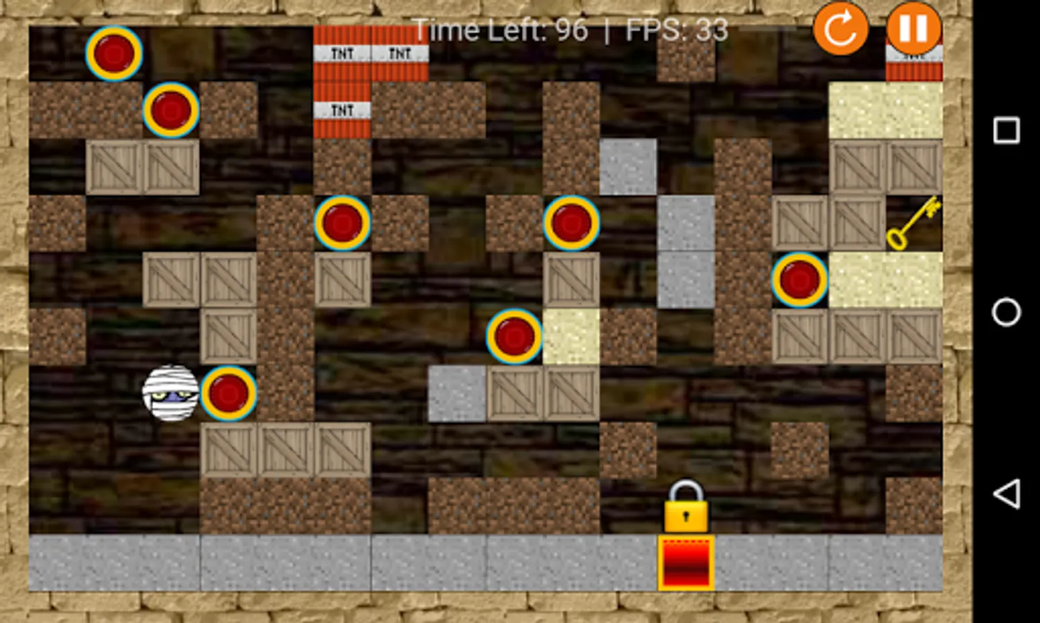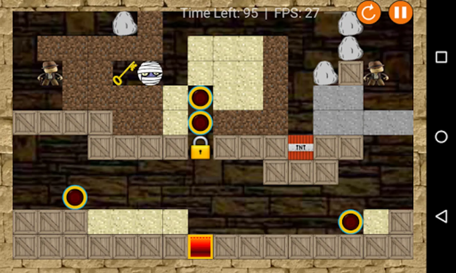 Move around rocks, dig through sand, explode TNT and evade capture from the explorers as you attempt to power up the teleportation device and escape. To control the Mummy you can use a joystick or D-pad on either left or right side of the screen.
