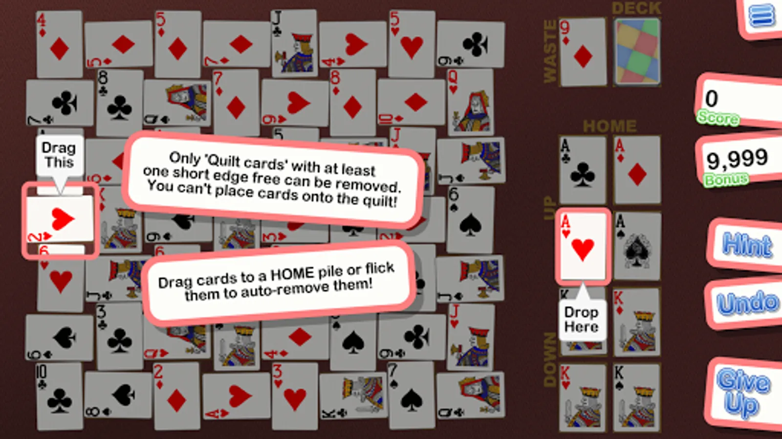 A unique & fun solitaire game - can you spot the next move from the cards woven into the quilt?