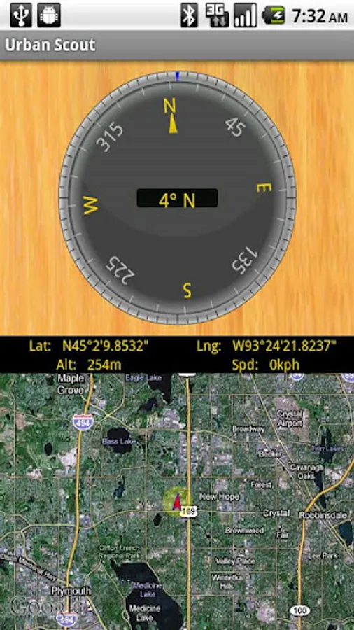 An omni-directional compass with map view, satellite view, geographical location, altitude and speed. Great for orienting yourself in the urban or suburban jungle.