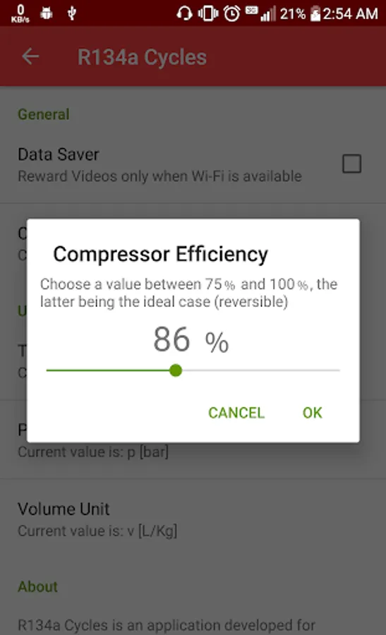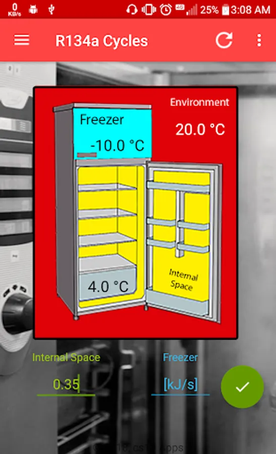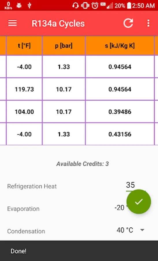 R134a Cycles is an App developed for secondary and university students, focused mainly in the area of Thermodynamic Engineering. My goal is to facilitate the resolution of problems and exercises of the topic "Refrigeration Cycles", integrating internally the tables corresponding to R134a Refrigerant (1,1,1,2-Tetrafluoroethane).