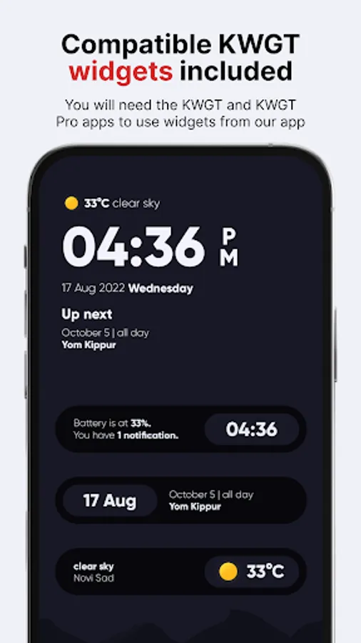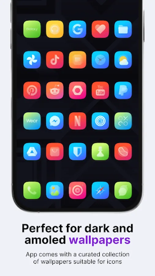 Suitable for dark wallpapers and themes (20 included in the app)