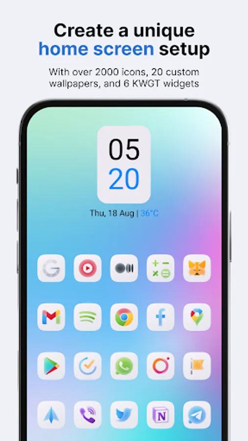 Suitable for all wallpapers and themes (20 included in the app)