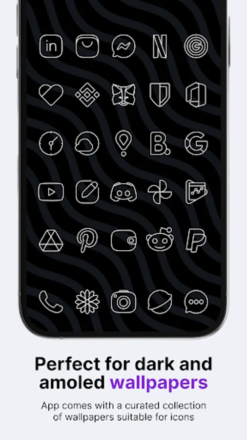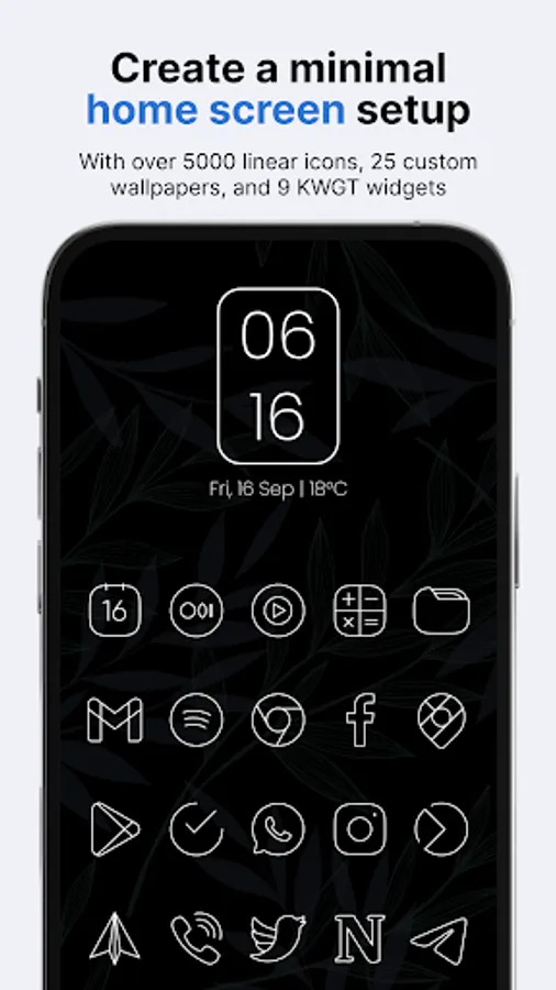 Let us introduce Vera Outline White, our shapeless linear android icon pack—a unique and stylish collection of white outlined glyph icons perfect for any modern Android phone. With a focus on simplicity and elegance, these icons feature clean lines and a minimalist design that will elevate the look and feel of your homescreen and app drawer. The pack includes over 5,620 icons, 25 wallpapers, and 9 KWGT widgets to complete the look of your homescreen. For the price of one app, you get content from three different apps! Our shapeless Vera Outline White icon pack will take your homescreen design to the next level!