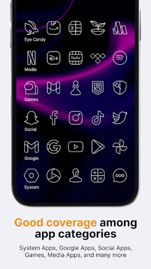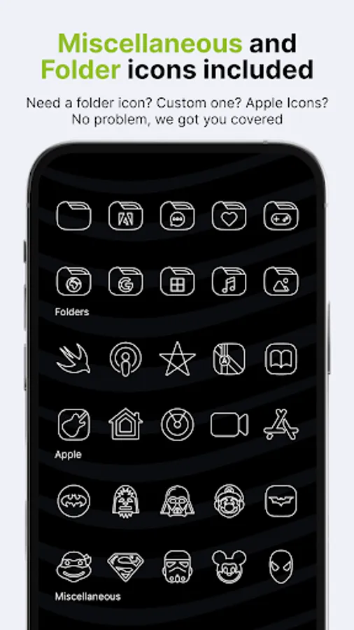 All our icon packs contain alternate icons for many popular apps, dynamic calendar icons, masking of unthemed icons, folders, and miscellaneous icons (you need to apply them manually).