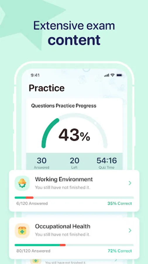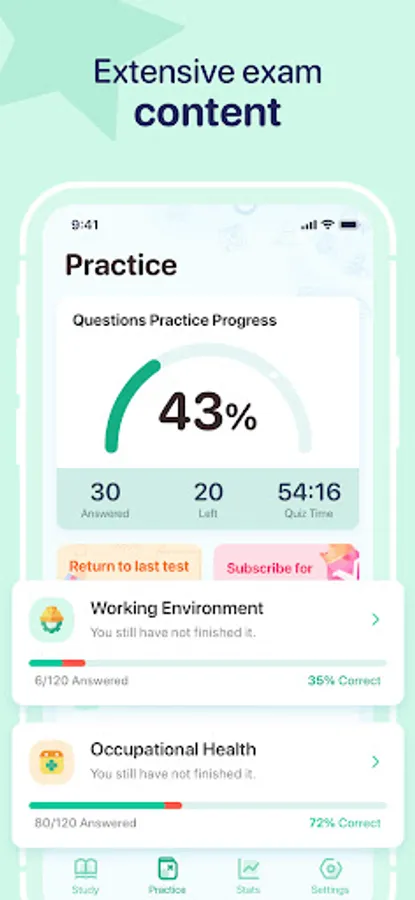 - Specialized practice by content area, with the flexibility to switch between them at any time
