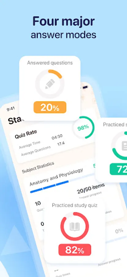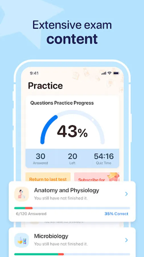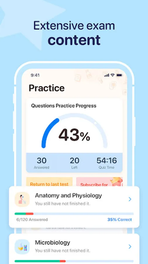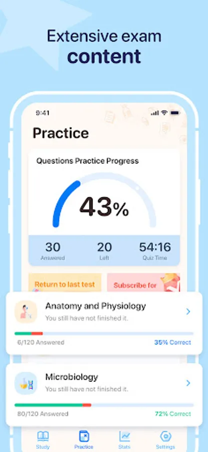 - Specialized practice by content area, with the flexibility to switch between them at any time